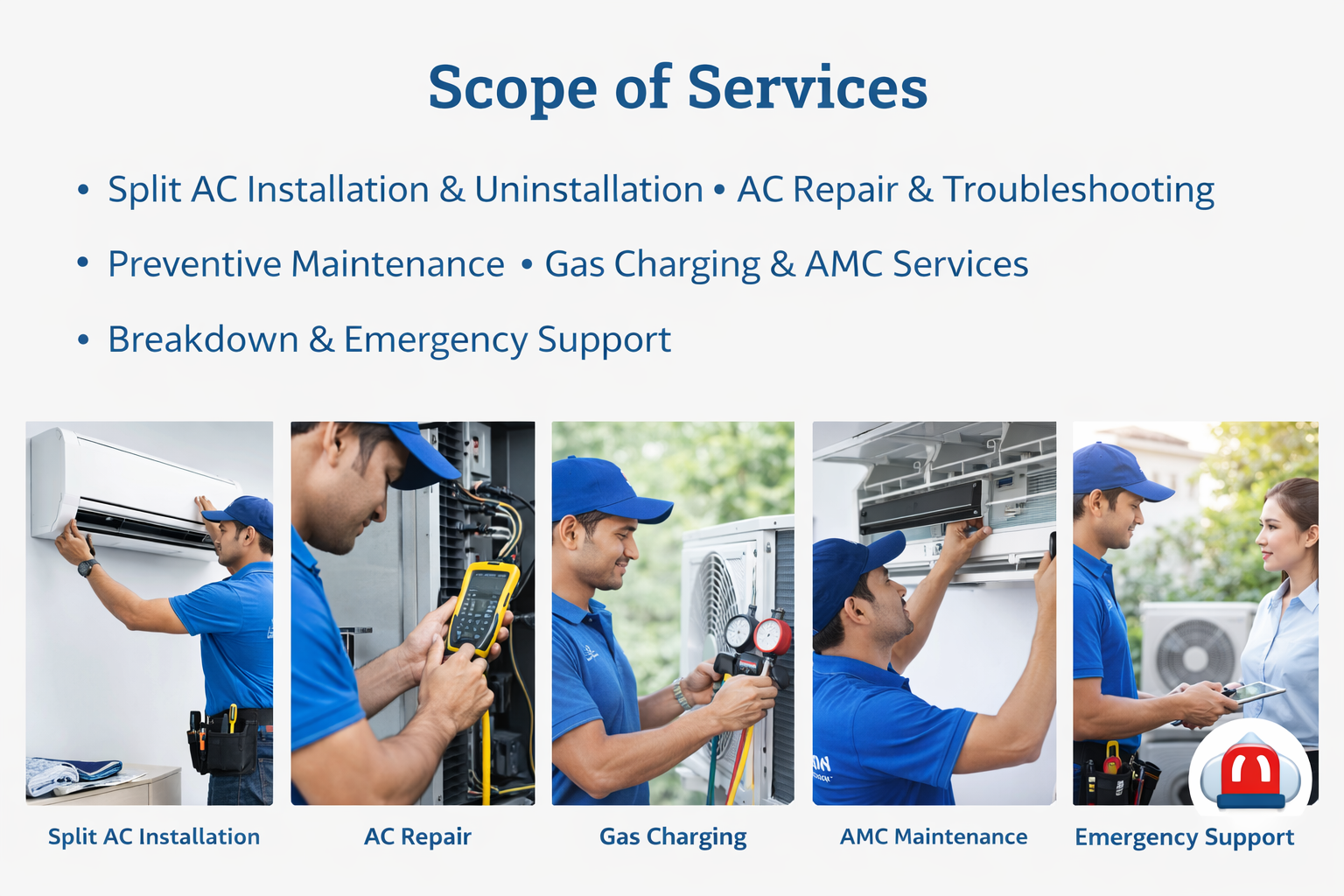 - Trained AC Technicians: 18+